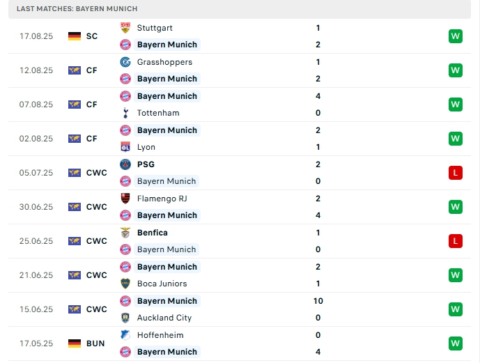 Bayern Munich là nhà ĐKVĐ của giải đấu, họ bước vào mùa giải năm nay với mục tiêu bảo vệ ngôi vương, Bayern Munich sở hữu lối chơi tấn công ấn tượng, ở mùa giải vừa qua họ mang về 99 bàn thắng cùng hàng thủ nhận 32 bàn thua sau 34 trận đấu, Bayern Munich cũng vừa tham dự sân chơi FIFA club World Cup và hàng công cũng ấn tượng với 16 bàn thắng, 4/5 trận gần nhất của Hùm xám khép lại 90 phút từ 3 bàn trở lên.