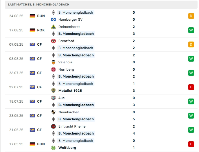 Monchengladbach ở vòng đấu đầu tiên, họ chưa có bàn thắng nào khi có trận hòa trước Hamburger SV, ở 5 trận gần nhất hàng công của Monchengladbach có được 9 bàn thắng cùng hàng thủ nhận 4 bàn thua, 2/3 trận vừa qua của Monchengladbach khép lại từ 3 bàn trở lên và 4/5 trận xa nhà cũng vượt mốc trên 3 bàn.