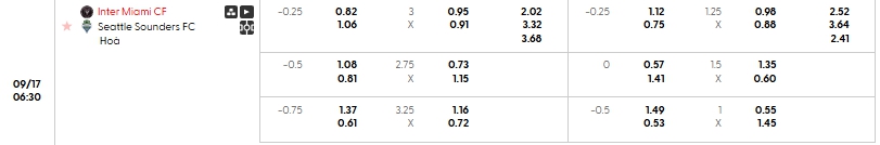 Bảng tỷ lệ kèo bóng đá trận đấu Inter Miami vs Seattle Sounders