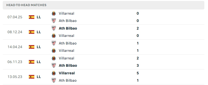 Lịch sử đối đầu của Villarreal vs Athletic Bilbao