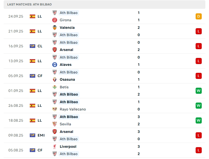 - Phong độ Athletic Bilbao