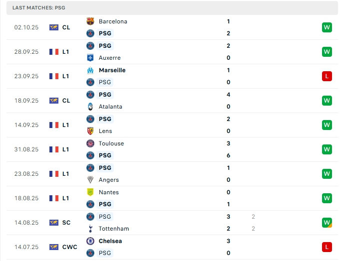 - Phong độ PSG