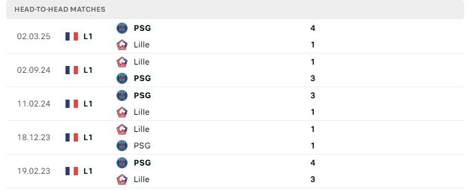 Lịch sử đối đầu của Lille vs PSG