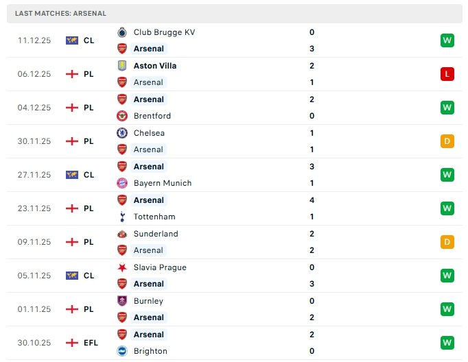 Arsenal sau 15 trận đấu họ mang về 10 chiến thắng, 3 hòa cùng 2 thất bại, có được 33 điểm và đang dẫn đầu trên BXH, Pháo thủ vừa nhận thất bại 1-2 trước Aston Villa ở đấu trường ngoại hạng Anh nhưng họ kịp trở lại bằng chiến thắng 3-0 trước Club Brugge KV ở sân chơi Champions League, phong độ thời gian qua mà đoàn quân HLV Mikel Arteta đang thể hiện hết sức ấn tượng, trên sân nhà Arsenal toàn thắng ở 8 trận liên tiếp gần nhất và bất bại ở 12 trận vừa qua.