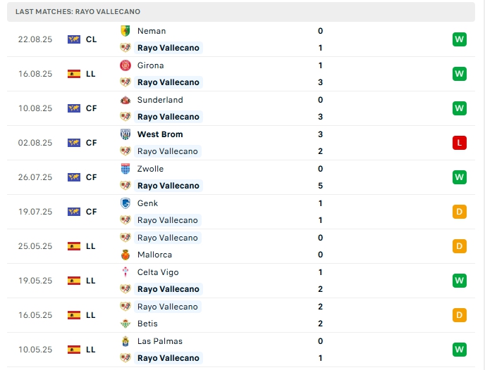 - Phong độ Rayo Vallecano