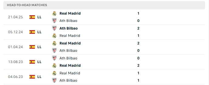 Phong độ gần đây Athletic Bilbao vs Real Madrid