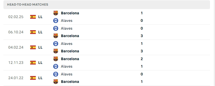 Lịch sử đối đầu của Barcelona vs Alaves