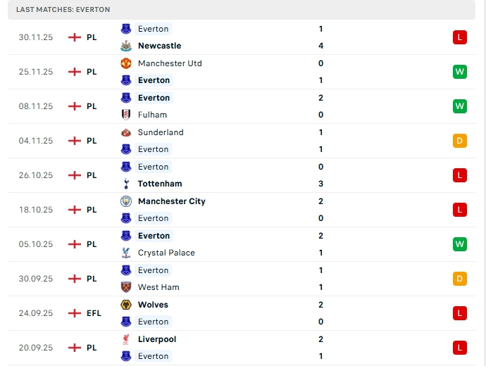 Everton sau 13 lượt trận đầu tiên, hàng công của đội bóng này mang về 14 bàn thắng cùng hàng thủ nhận 17 bàn thua, hàng thủ của Everton thời gian qua chơi thiếu chắc chắn, 4/5 trận xa nhà vừa qua họ đều để các đối thủ chọc thủng lưới.