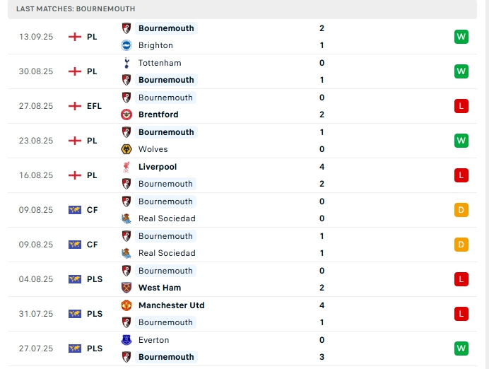 - Phong độ Bournemouth