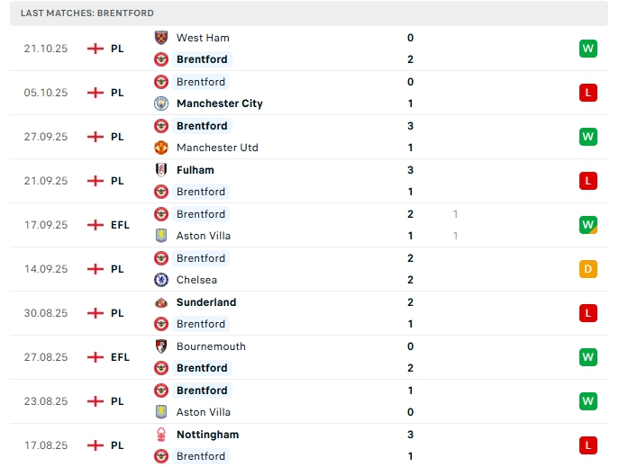 Brentford sau 8 trận đấu họ mang về 3 chiến thắng, 1 hòa cùng 4 thất bại, có được 10 điểm và đang xếp vị trí thứ 13 trên BXH, ở vòng đấu gần nhất Bầy ong có được chiến thắng 2-0 trước West Ham, phong độ thời gian qua của Brentford là không quá tốt, đan xen với 1 thất bại là 1 chiến thắng, dù vậy trên sân nhà của mình Brentford đang chơi hay với 3 chiến thắng, 1 hòa và chỉ 1 thất bại ở 5 trận gần nhất.