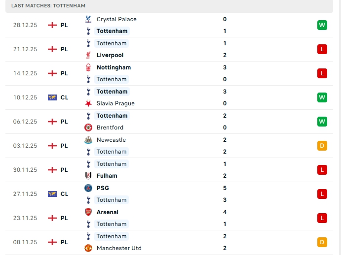 - Phong độ Tottenham