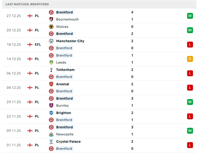 - Phong độ Brentford