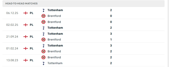 Lịch sử đối đầu của Brentford vs Tottenham