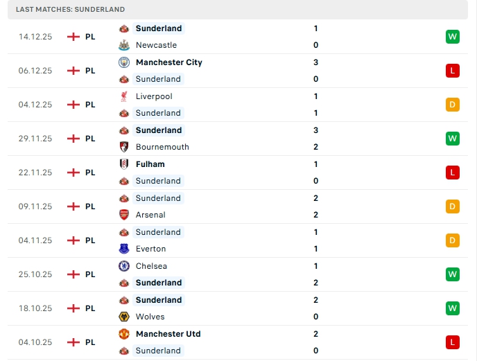 Sunderland sau 16 lượt trận, hàng công của đội bóng này mang về 19 bàn thắng cùng hàng thủ nhận 17 bàn thua, 3/5 trận vừa qua của Sunderland khép lại không quá 2 bàn thắng, khi thi đấu xa nhà Sunderland thường chơi lùi sâu và nhập cuộc thận trọng, 3/5 trận xa nhà của họ cũng không quá 2 lần lưới rung.