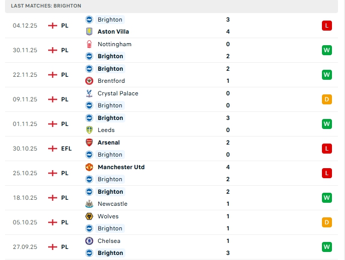 - Brighton 3-1 West Ham Utd(Full-Time)