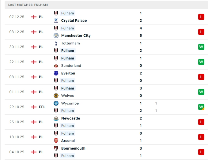 Bên kia sân, Fulham sau 15 trận đấu, đội bóng này có cho mình 5 chiến thắng, 2 hòa cùng 8 thất bại, có được 17 điểm và đang xếp thứ 15 trên BXH, ở vòng đấu gần nhất Fulham nhận thất bại 1-2 trước Crystal Palace, đây là trận thua thứ 2 liên tiếp của đội bóng này, phong độ thời gian qua của Fulham cũng không quá tốt khi thắng 2, thua 2 ở 4 trận gần nhất, khi xa nhà Fulham thắng 2 và thua 3 sau 5 trận đấu.