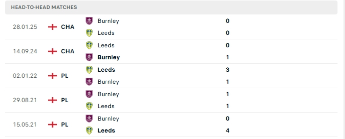 Lịch sử đối đầu của Burnley vs Leeds Utd