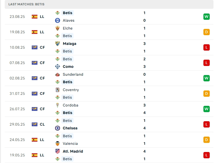 Betis ở 2 vòng đấu đầu tiên, hàng công vẫn chưa vào Form khi chỉ có được 2 bàn thắng cùng hàng thủ nhận 1 bàn thua, dù vậy lối chơi của Betis vẫn thiên về tấn công, trên sân khách đội bóng này mang về 8 bàn thắng ở 5 trận đã qua và ở cả 5 trận đấu đó họ điều ghi tên lên bảng điện tử.