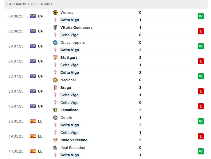 Celta Vigo kết thúc mùa giải vừa qua ở vị trí thứ 7, với 55 điểm, Đội ghi được 59 bàn thắng, nhưng cũng để thủng lưới 57 bàn, để chuẩn bị cho mùa giải mới họ có cho mình 7 trận giao hữu, mang về 8 bàn thắng cùng hàng thủ nhận 8 bàn thua, 4/7 trận đấu đó khép lại không quá 2 bàn thắng, trên sân nhà của mình ở 2 trận giao hữu gần nhất cũng không quá 2 lần lưới rung.