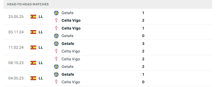 Lịch sử đối đầu của Celta Vigo vs Getafe
