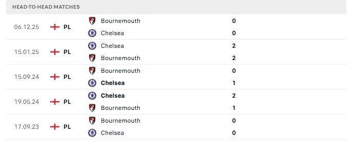 Lịch sử đối đầu của Chelsea vs Bournemouth