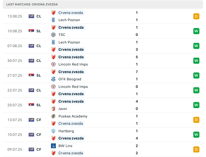 Crvena Zvazda là đại diện Serbia, đội bóng này có lối chơi tấn công đẹp mắt, 3/5 trận vừa qua của họ khép lại 90 phút từ 3 bàn thắng trở lên, trong đó hàng công mang về 17 bàn thắng và hàng thủ nhận 4 bàn thua, 3/5 trận trên sân nhà của họ cũng khép lại vượt mốc 3 bàn.