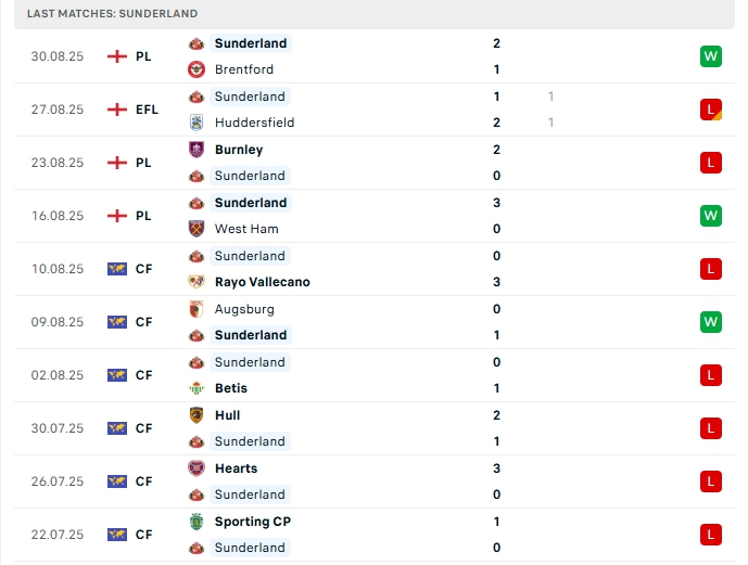 Sunderland sau 3 lượt trận đội bóng này có cho mình 5 bàn thắng cùng hàng thủ nhận 3 bàn thua, 2/3 trận vừa qua của họ khép lại từ 3 bàn thắng trở lên, khi thi đấu xa nhà ở 4/5 trận gần nhất họ đều để các đối thủ chọc thủng lưới, hàng công đang chơi tốt nhưng hàng thủ cũng là điểm yếu của đội bóng này.