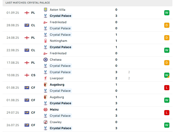 Crystal Palace ở 3 vòng đấu đầu tiên, họ đang bất bại khi mang về 1 chiến thắng và 2 hòa, họ có được 5 điểm và đang xếp vị trí 8 trên BXH, ở trận ra quân Crystal Palace có được trận hòa trước Chelsea, sau đó là trận hòa 1-1 trước Nottingham, trận gần nhất họ thắng 3-0 trước Aston Villa, phong độ thời gian qua của Crystal Palace là khá tốt khi đại bàng có được 7 trận bất bại với 3 chiến thắng và 4 hòa, trên sân nhà của mình Crystal Palace bất bại ở 13 trận liên tiếp.