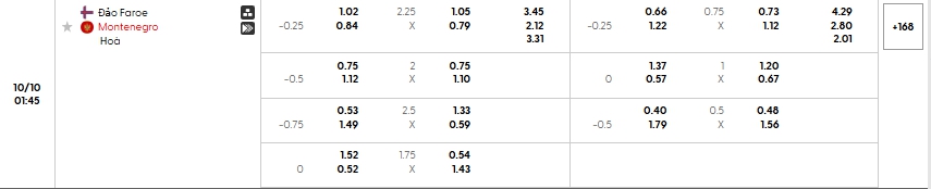 Bảng tỷ lệ kèo bóng đá trận đấu Đảo Faroe vs Montenegro