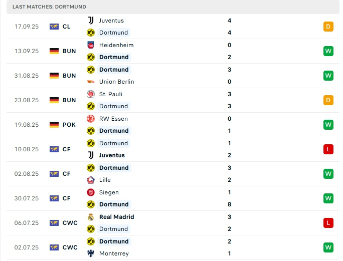 Dortmund ở ngày ra quân dù có bàn thắng dẫn trước nhưng họ để St Pauli cầm hòa với tỷ số 3-3, sau đó đội bóng áo vàng đen mang về 2 chiến thắng liên tiếp khi đánh bại Union Berlin và Heidenheim, 7 điểm có được sau 3 trận giúp Dortmund đang xếp vị trí thứ 2 trên BXH, phong độ thời gian qua của Dortmund là khá tốt, với chuỗi 5 trận bất bại liên tiếp, trên sân nhà của mình Dortmund cũng chơi tốt với 9 chiến thắng và chỉ 1 thất bại ở 10 trận gần nhất.