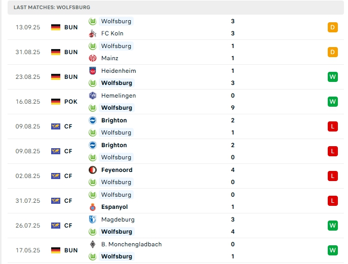 Wolfsburg sau 3 vòng đấu họ mang về 7 bàn thắng cùng hàng thủ nhận 5 bàn thua, 2/3 trận đấu đó khép lại 90 phút trên 3 bàn, Wolfsburg sở hữu hàng công tốt nhưng hàng thủ vẫn chơi tệ khiến họ đang dễ bị đối thủ khai thác, khi thi đấu xa nhà ở 4/5 trận gần nhất khép lại vượt mốc 3 lần lưới rung.