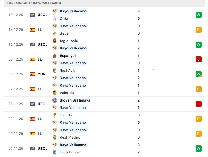 - Phong độ Rayo Vallecano