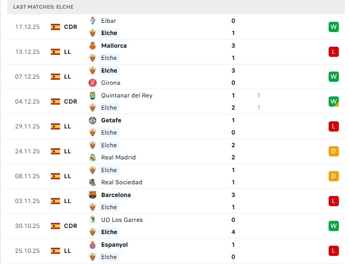 Phong độ gần đây Elche vs Rayo Vallecano