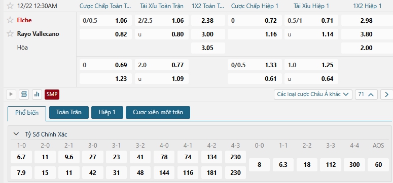 - Chọn Elche -0.25 (Full-Time)
