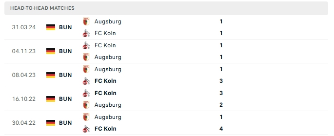Lịch sử đối đầu của FC Koln vs Augsburg