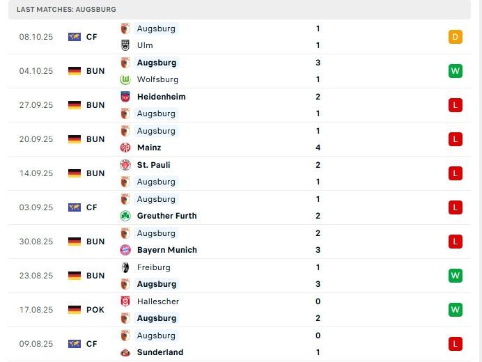- Phong độ Augsburg