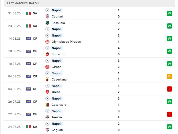 - Phong độ Napoli