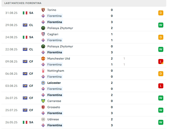 - Phong độ Fiorentina