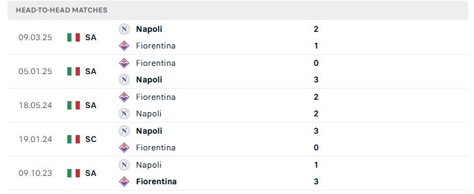 Những màn đụng độ giữa Fiorentina và Napoli thường diễn ra hấp dẫn với nhiều bàn thắng được tạo ra, cả 5 lần gặp nhau gần nhất của hai đội khép lại từ 3 bàn thắng trở lên, 3/5 lần đón tiếp Napoli trên sân của Fiorentina khép lại trên 3 bàn thắng.