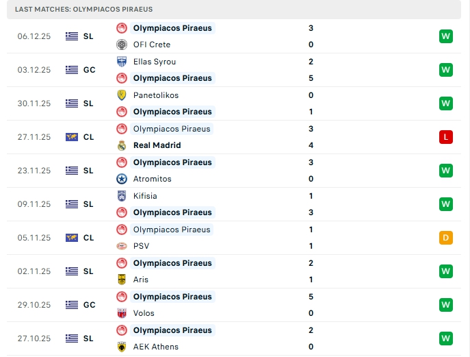 - Phong độ Olympiakos