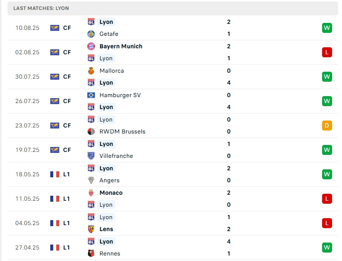 Lyon mùa giải trước (2024/25) kết thúc ở vị trí 6 với 57 điểm sau 34 trận (thắng 17, hòa 6, thua 11), có được 65 bàn thắng và nhận 46 bàn thua, để chuẩn bị cho mù giải mới họ có cho mình 6 trận giao hữu, trong đó hàng công có được 12 bàn thắng cùng hàng thủ nhận 3 bàn thua, 4/6 trận đấu đó khép lại từ 3 bàn trở lên và 4/5 trận xa nhà của Lyon đều khép lại 90 phút vượt mốc 3 bàn.