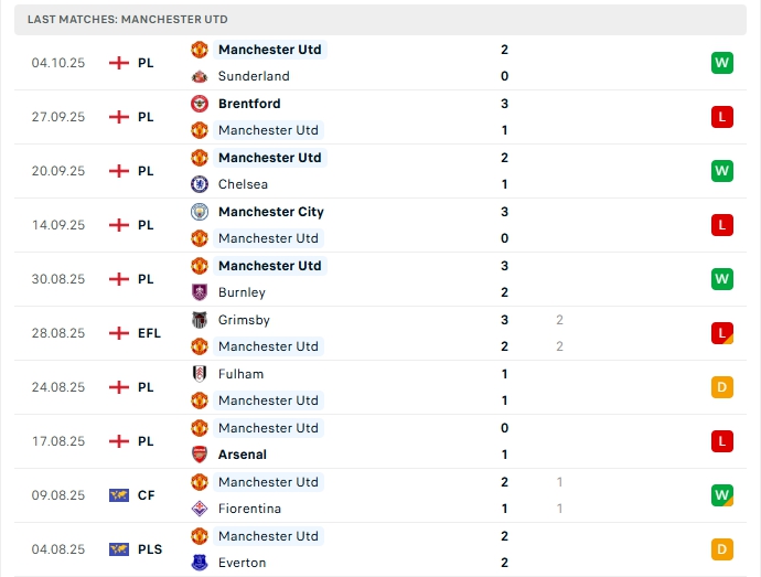Man Utd sau 7 lượt trận đội bóng này có cho mình 9 bàn thắng cùng hàng thủ nhận 11 bàn thua, 4/5 trận vừa qua của họ khép lại từ 3 bàn thắng trở lên, khi thi đấu xa nhà ở 4/5 trận vừa qua cũng chạm mốc từ 3 bàn trở lên.