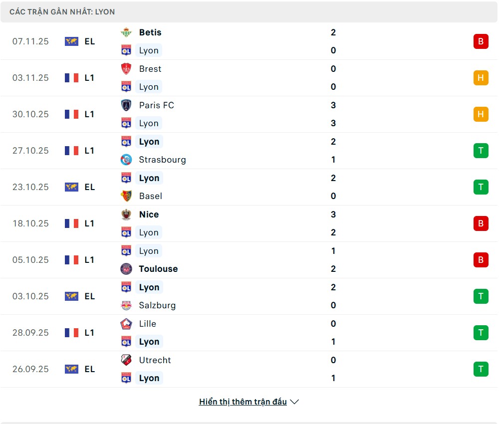 Tại sân chơi quốc nội, Lyon đang chơi ổn nhưng chưa đủ sắc: thắng 6, hòa 2, thua 3 – hàng công ghi 16 bàn nhưng hàng thủ cũng để lọt lưới tới 12. Trên sân nhà, “Sư tử sông Rhone” vẫn luôn biết cách gầm gừ, song mỗi lần đối đầu PSG lại là một câu chuyện khác: thua 4/5 lần gặp gần nhất tại Ligue 1, đa phần là những trận cầu bùng nổ bàn thắng.