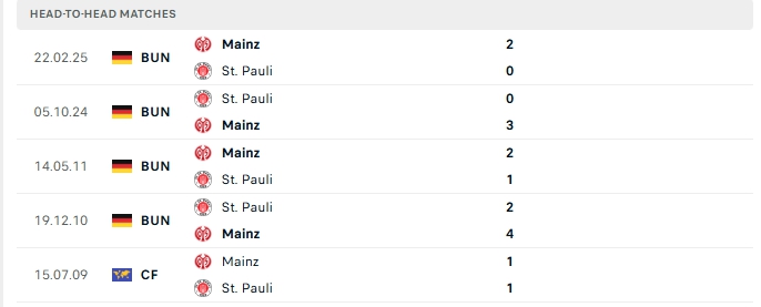 Lịch sử đối đầu của Mainz vs St. Pauli