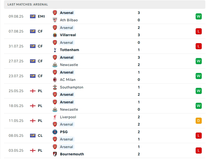 - Phong độ Arsenal
