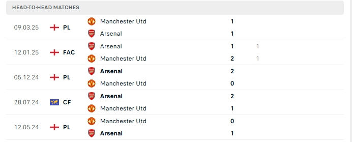 Phong độ gần đây Man Utd vs Arsenal