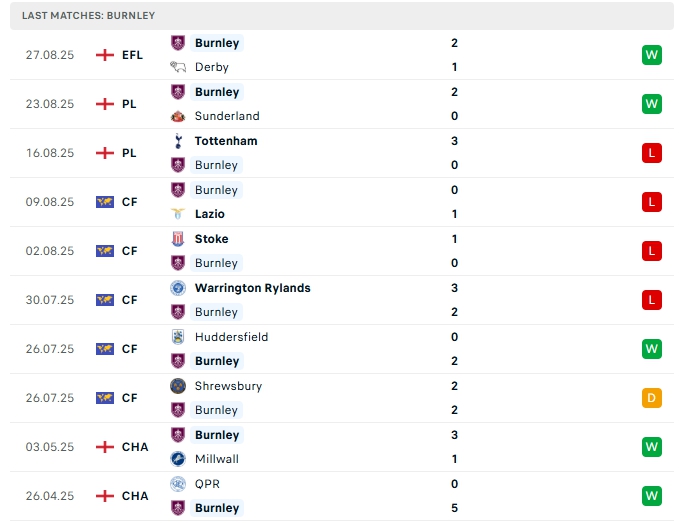 • Phong độ Burnley