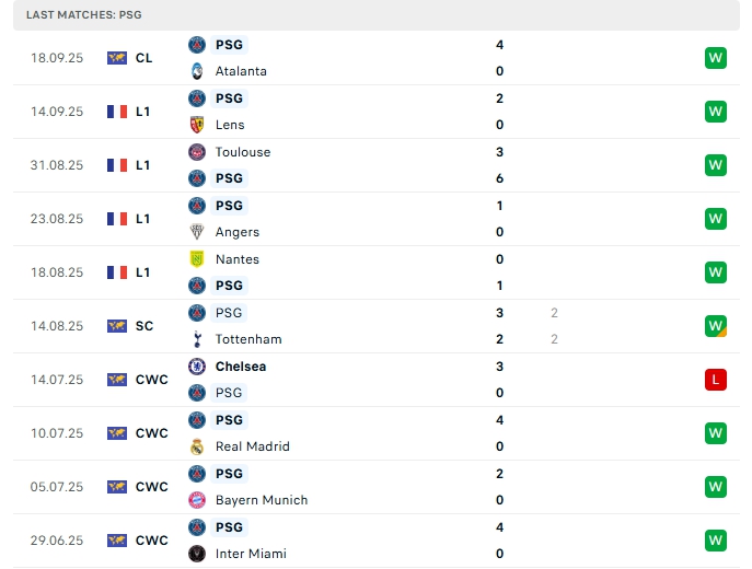 Bên kia sân, PSG vẫn là ông vua ở giải VĐQG Pháp, họ tỏ ra out trình so với phần còn lại, sau 4 trận đấu, PSG toàn thắng cả 4 với 12 điểm tuyệt đối và đang dẫn đầu trên BXH, họ lần lượt vượt qua Nantes, Angers, Toulouse và Lens, phong độ thời gian qua của PSG là cực tốt, khi thi đấu xa nhà đoàn quân của HLV Luis Enrique toàn thắng ở 2 lượt trận vừa qua.