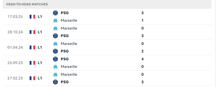 Những màn đụng độ giữa Marseille và PSG thường diễn ra hấp dẫn với nhiều bàn thắng được tạo ra, cụ thể ở 5 lần gặp nhau gần nhất thì có 4 lần khép lại từ 3 bàn trở lên và 3/5 lần đón tiếp PSG trên sân nhà của Marseille cũng có kết quả tương tự.