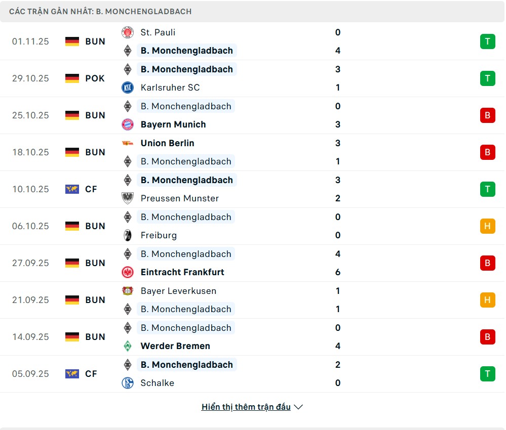 • Phong độ Monchengladbach